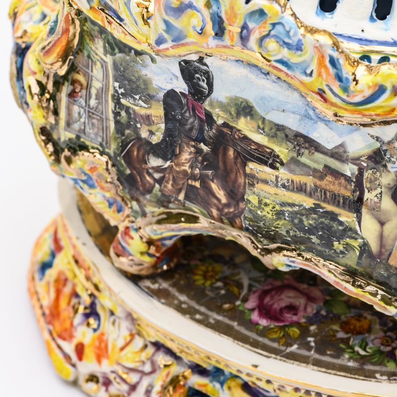 In this new exhibition, Tjanpi Desert Weavers ingeniously combine cultural weaving practices with recycling found objects in a series of hanging fibre sculptures created by weaving native grass onto the metal car seat frames salvaged from the remains of burnt-out motorcars.